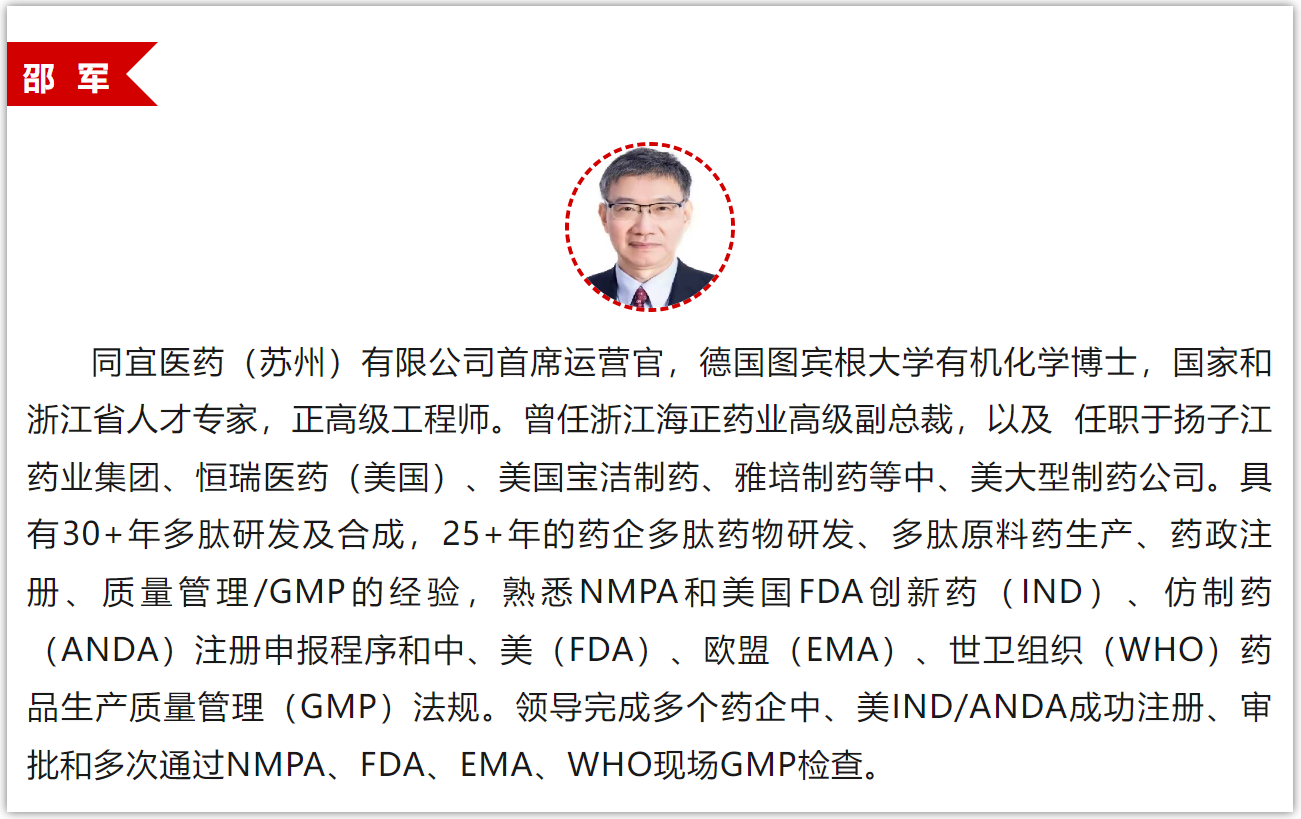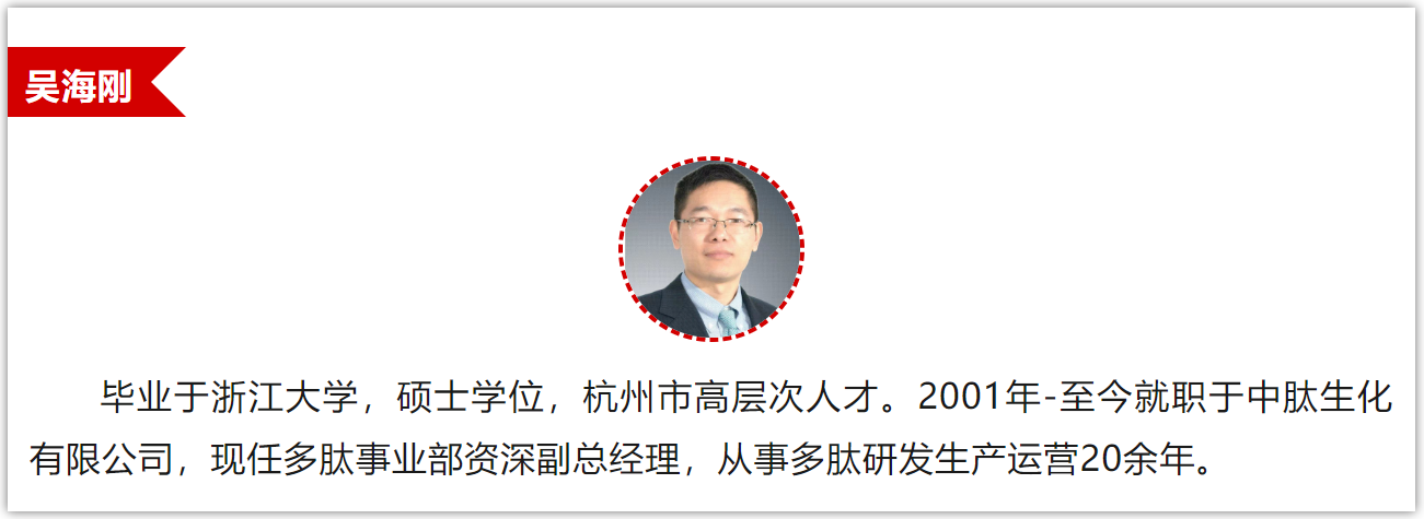 11:10-11:40 | 吳海剛 | 多肽API供應(yīng)鏈的機(jī)遇和挑戰(zhàn) | |