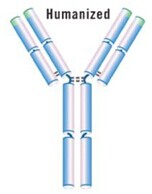 取其與抗原直接接觸的那段抗體片段(互補(bǔ)決定區(qū),CDR)與人的抗體框架嫁接,經(jīng)親和力重塑,可維持其特異性和大部分的親和力,同時(shí)幾乎完全去除免疫原性和毒副作用。人源化抗體成功的例子:Herceptin,Genentech公司的抗HER2/neu抗體,用于治療乳腺癌。是人表皮生長因子的受體-2(Her-2)重組DNA衍生的人源化抗體,95%的人源和5%的鼠源。
