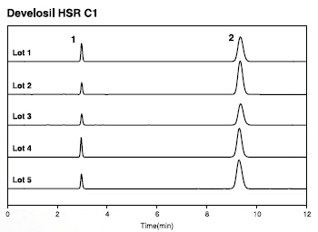 所有的Develosil系列色譜出均出自野村化學。因此,質量控制有嚴格的要求,批次之間有著極高的重現性。