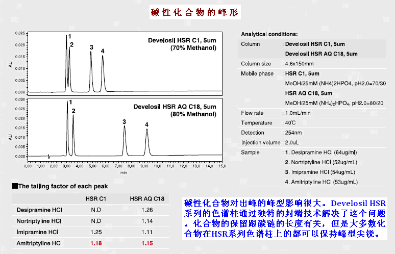 Develosil HSR系列色譜柱,在很多領域,比如醫藥、食品以及環境領域,均有很多有價值的數據可供參考。