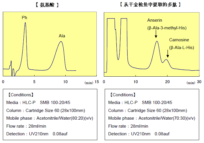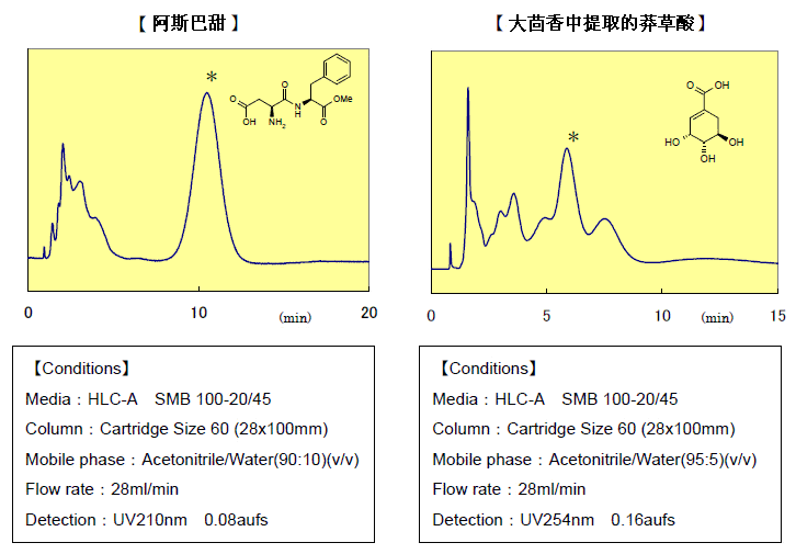在HILIC模式下,初始流動相條件用的是高比例有機(jī)溶劑和水。這種洗脫體系使得單一化合物得到分離,并且之后的處理步驟也相對簡化(旋蒸或者凍干)。洗脫體系中水含量的增加,使得樣品更容易被洗脫出來。因此,在HILIC模式中,與水易混合的有機(jī)相體系最為常用,比如乙腈-水體系。以下應(yīng)用給出了使用HLC-A硅膠,在乙腈-水等度體系中,分析和制備的應(yīng)用。