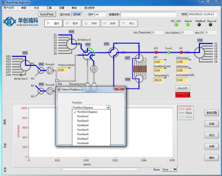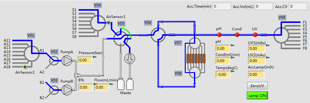 6、全自動柱流向切換閥門,可實現層析柱正、反向流動及旁路功能;