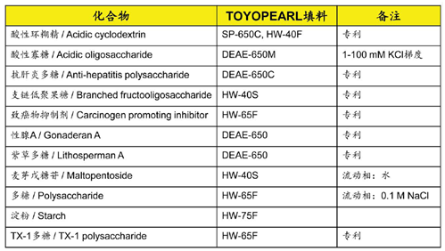 屬類 | 對象 | 填料 | 流動(dòng)相 | 獲得的多糖 |