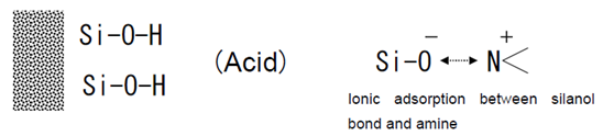 硅膠表面的硅醇基是有極性的,帶負(fù)電,酸性,與堿性化合物存在離子間的強(qiáng)吸附作用