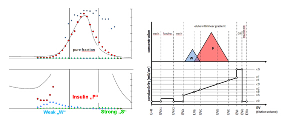 L.Aumann等通過Batch工藝,得出在胰島素精純時目標產(chǎn)物與雜質(zhì)的分布特點。