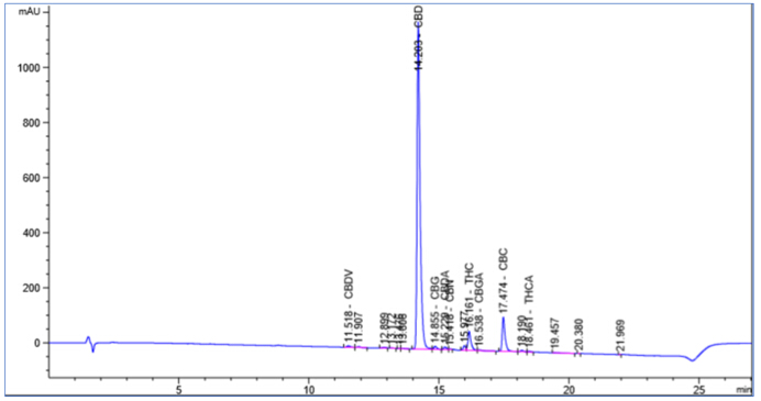 圖10. MCSGP純化所得CBD液相分析圖譜