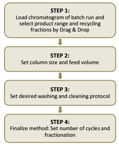 MCSGP向導軟件可自動計算回收階段的在線稀參數,并可顯示所需進料的總體積、溶劑和運行時間等。