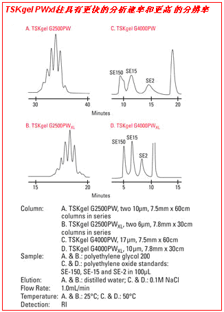 2. 使用柱效更高的PWxl型柱去實現最佳分辨率,從而縮短分析時間,或在樣品量受限的情況中分析樣品。