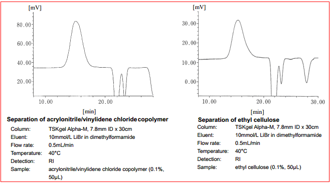 1. TSKgel Alpha系列色譜柱由親水性球形聚甲基丙烯酸酯顆粒填充。