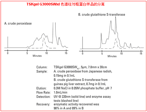 1. TSKgel SW-型填料由含二醇基官能團的剛性球形硅膠顆粒組成。