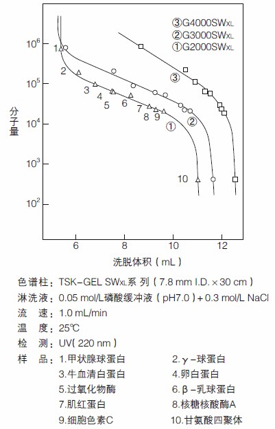 TSKgel SWxl柱的蛋白質(zhì)校準(zhǔn)曲線